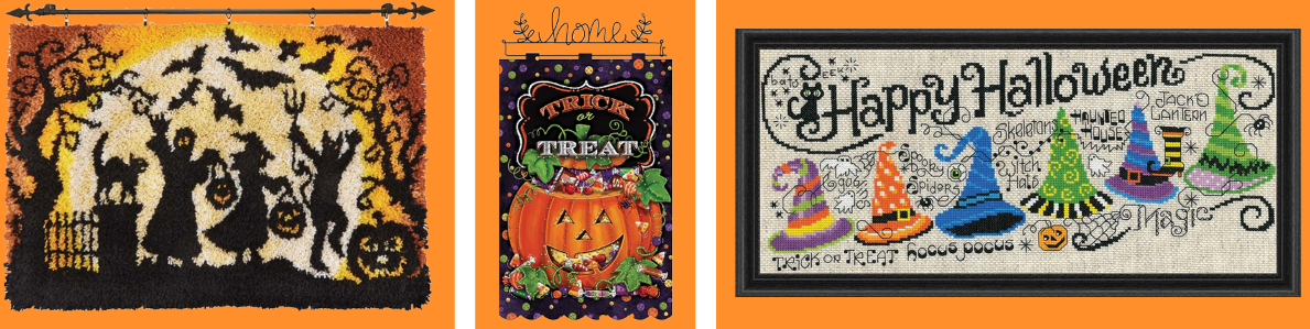 Save time later by getting your hanger now! It’s not a trick that you can save when you do. Avoid the tricks that fill the night as you join a trio of costumed revelers on their hunt for tasty treats with the Trick or Treat Trio Kit & Hanger. The sweet Trick or Treat Banner Kit & Hanger showcases a felt and sequin jack-o’-lantern that is overflowing with Halloween treats! Magic hats and spooky spells are just the trick for this Halloween Hat Trick Kit & Frame.