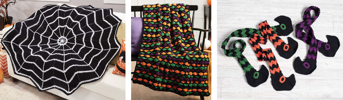 Wrap up in this cuddly oversized Crochet Spider Web Afghan to easily get in the Halloween spirit or display it across your couch for a little extra spookiness. We know that October can be a little chilly, especially in the Midwest. No worries, the Happy Halloween Crochet Afghan will keep you warm. If you have to venture out in the wicked October weather, be sure to have these Witch Feet Scarves handy. They are the perfect accessory to make any outfit festive!